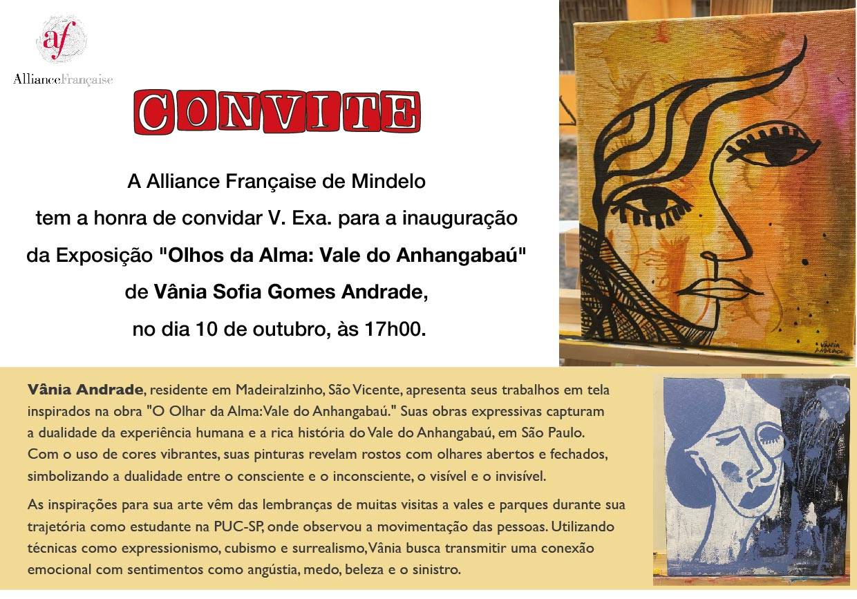 L’Alliance Française de Mindelo a le plaisir de vous inviter au vernissage de l’exposition Olhos da Alma: Vale do Anhangabaú de Vânia Sofia Gomes Andrade, le 10 octobre à 17h00.